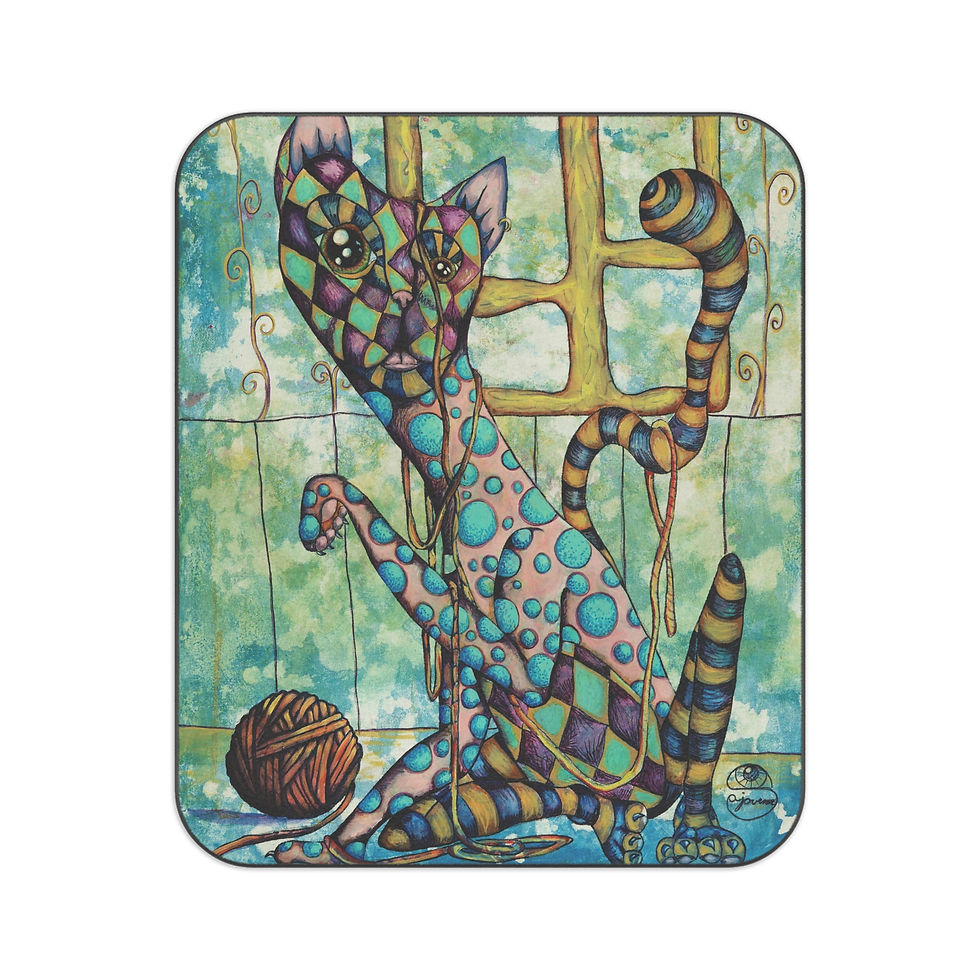 Funky Cat Tapestry — Colorful Indoor Wall Art with Yarn Motif
