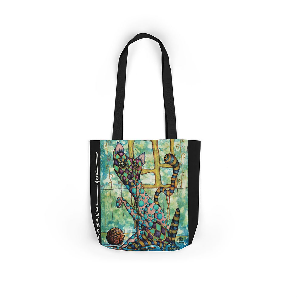 Funky Cat Canvas Tote — Colorful Whimsical Cat & Ball Design